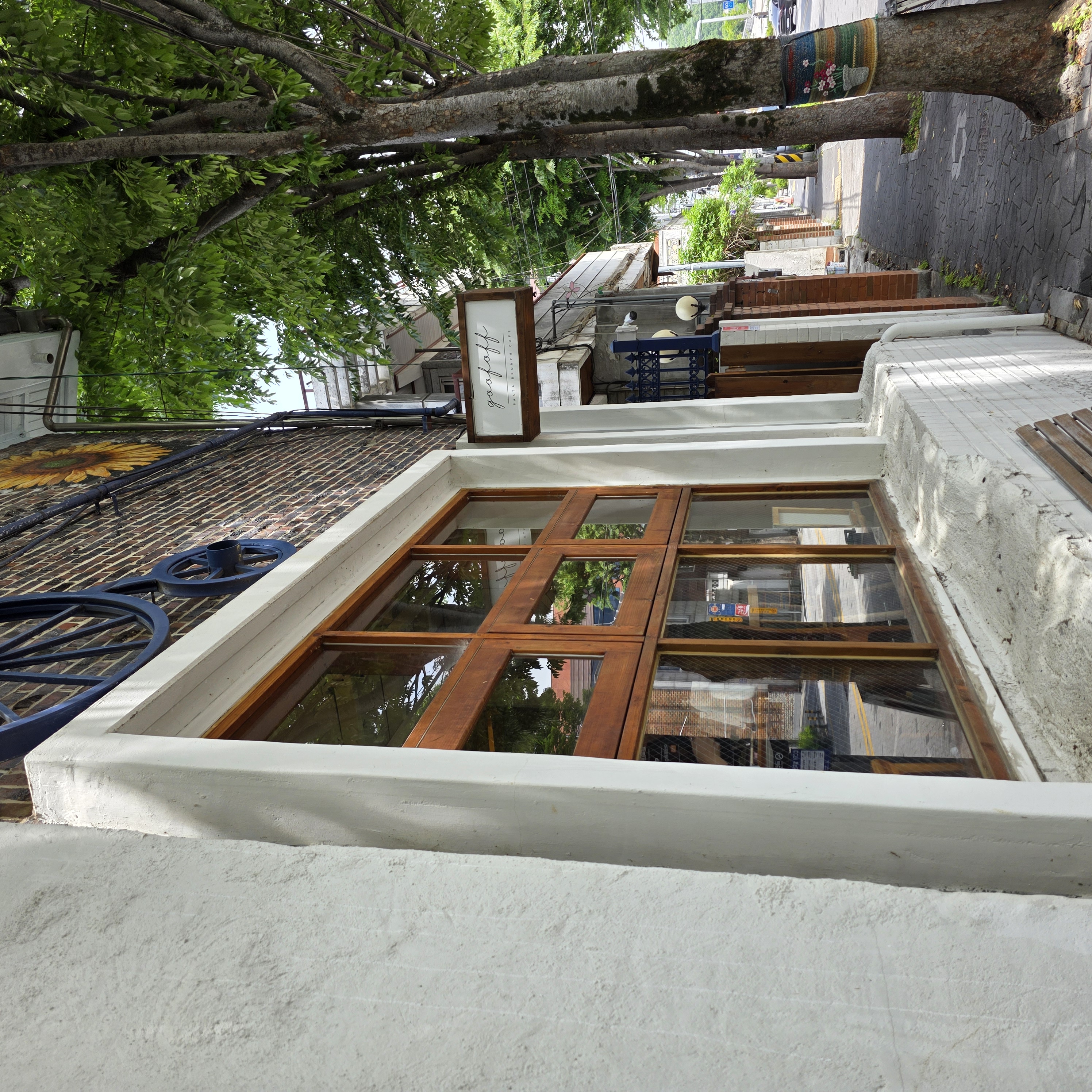 다 먹고 살짝 여유 있어 야외 테이블에 나와봤습니다