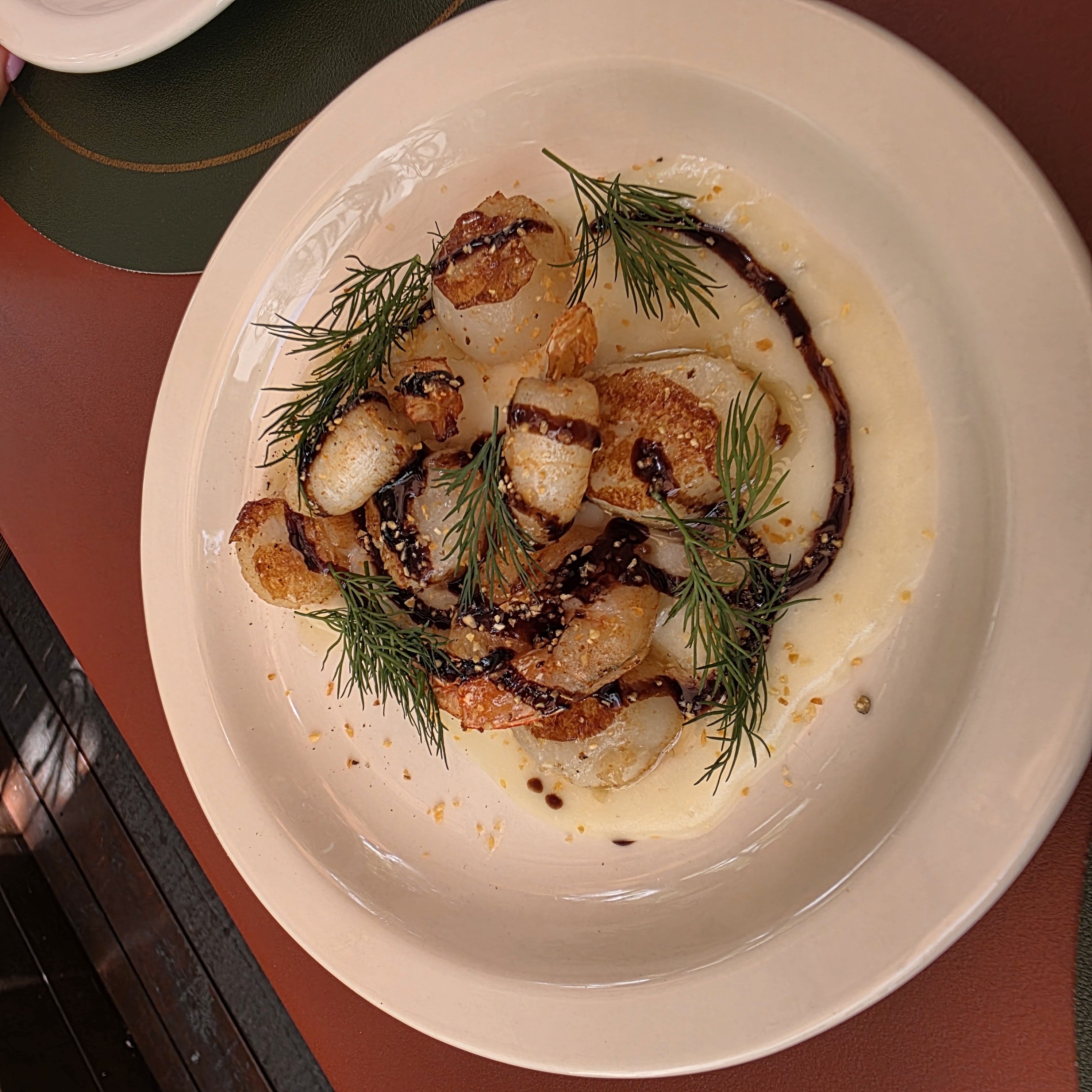 가리비 관자와 새우 요리는 고소하면서도 은은한 해산물 향이 퍼지는 맛