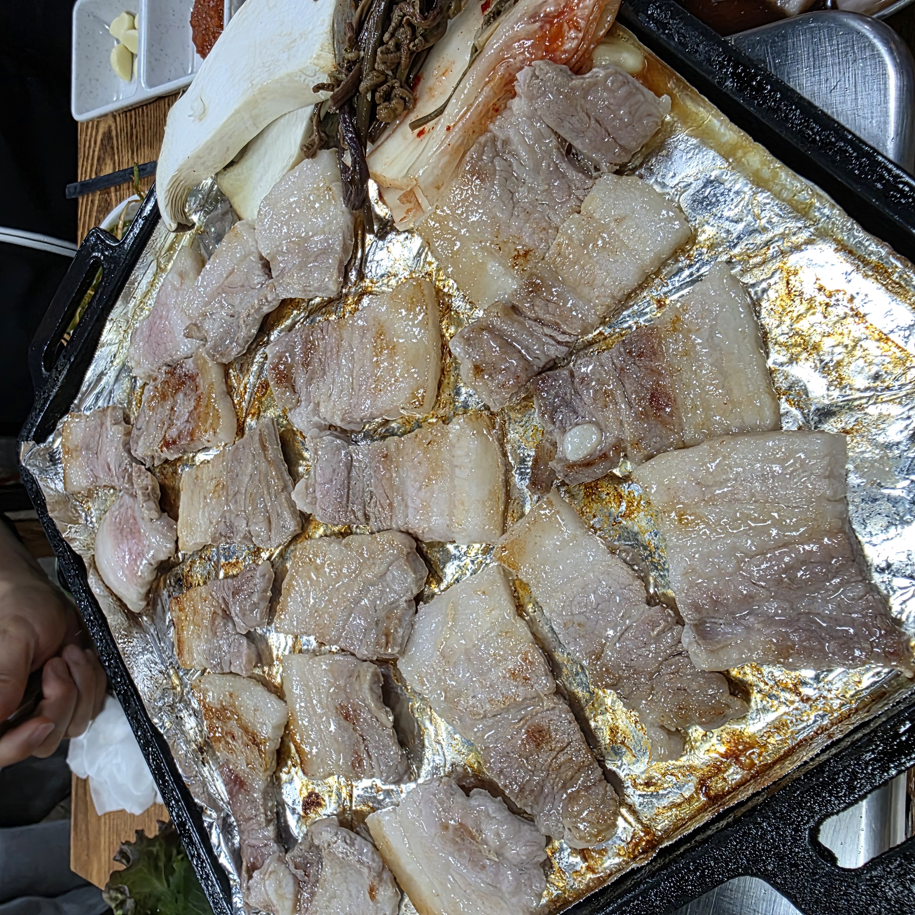 오랜만에 본가 내려갔다가 가족들이랑 저녁 먹으러 들른 삼겹살집인데…