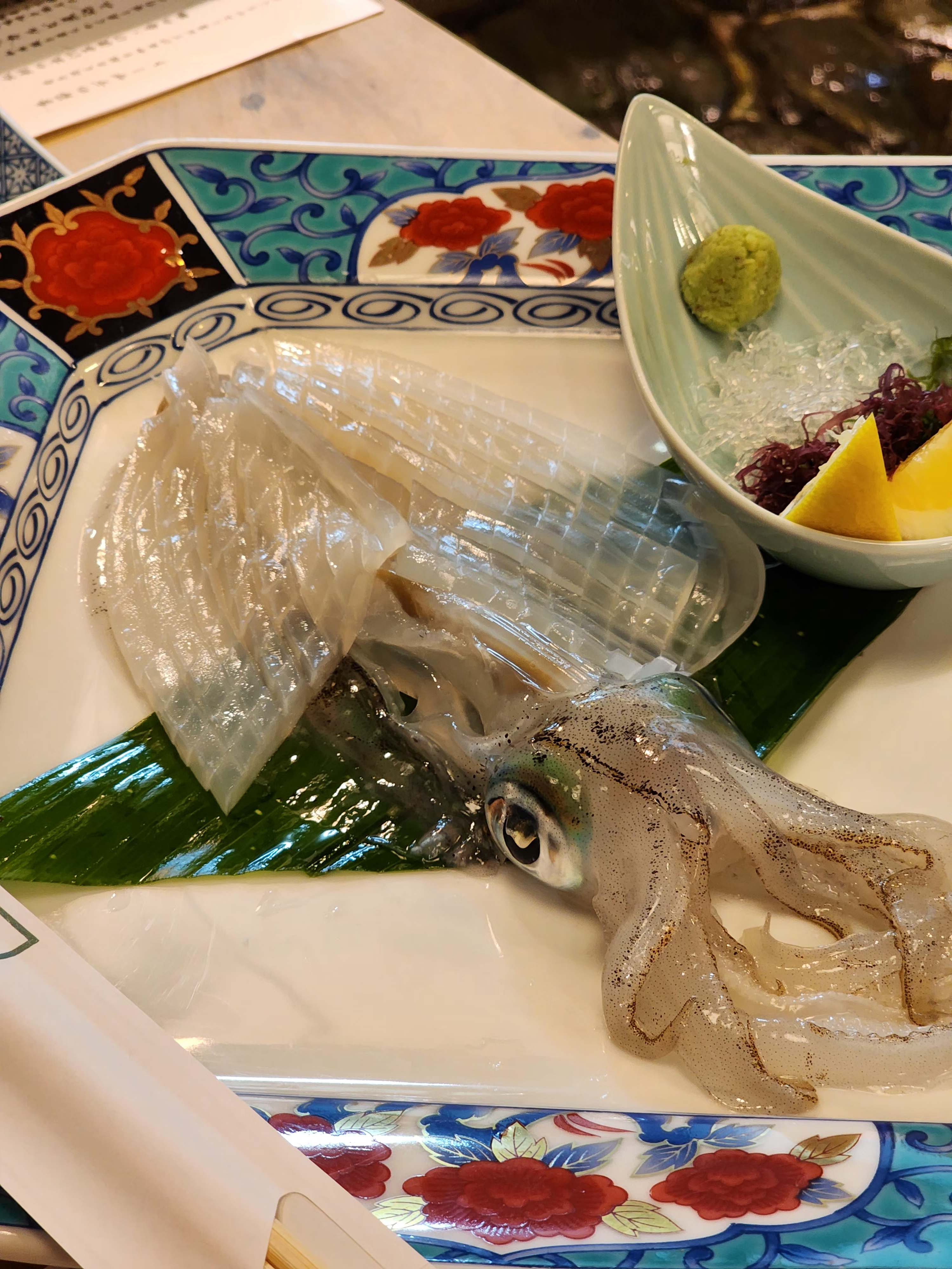 한국에서 먹는 오징어회와는 전혀 다른 느낌이죠